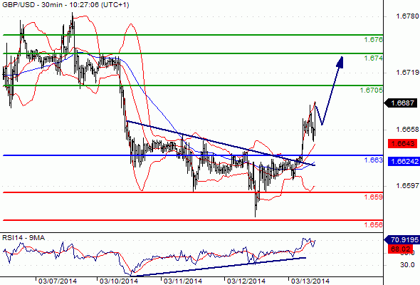Most Likely Scenario: Long positions above 1.663 with targets @ 1.6705 & 1.674 in extension.