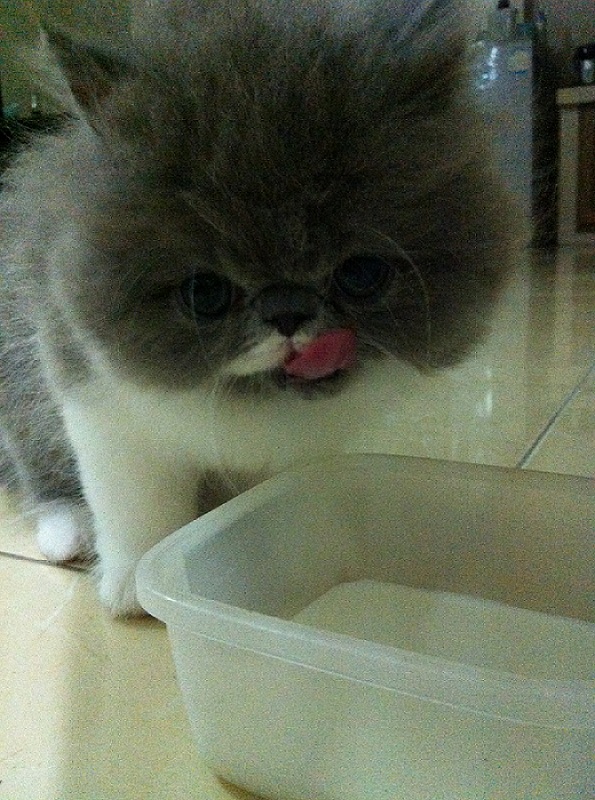 ผมเป็นแมวเปอร์เซียฮัฟ อายุ เกือบ 2 เดือนแล้วฮะ แต่แม่ผมยังไม่ค่อยแน่ใจว่าผมเป็นเปอร์เซีย ดิวิชั่นไบคัลเลอร์หรือเปล่า? รบกวนกูรูทั้งหลายช่วยบอกแม่ผมหน่อยนะฮะ อีกคำถามที่อยากปรึกษาคือผมเพิ่งมาอยู่บ้านแม่ได้ 2 วัน ตอนนี้ผมยังไม่ได้อึ ไม่ได้ฉี่เลย แต่ผมวิ่งเล่นซน ร่าเริงดี และกินไก่ลวกกับนมแพะได้ดี ผมจะผิดปกติหรือเปล่าฮะ