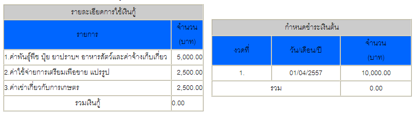 <td colspan="2"><span class="style2">รายละเอียดการใช้เงินกู้</span></td></tr>