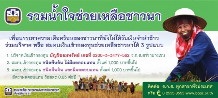 ก็เชิญชวนสมาชิกด้วยค่ะ คนละเล็กละน้อย รวมกันเป็นเงินก้อนใหญ่ไปช่วยชาวนา