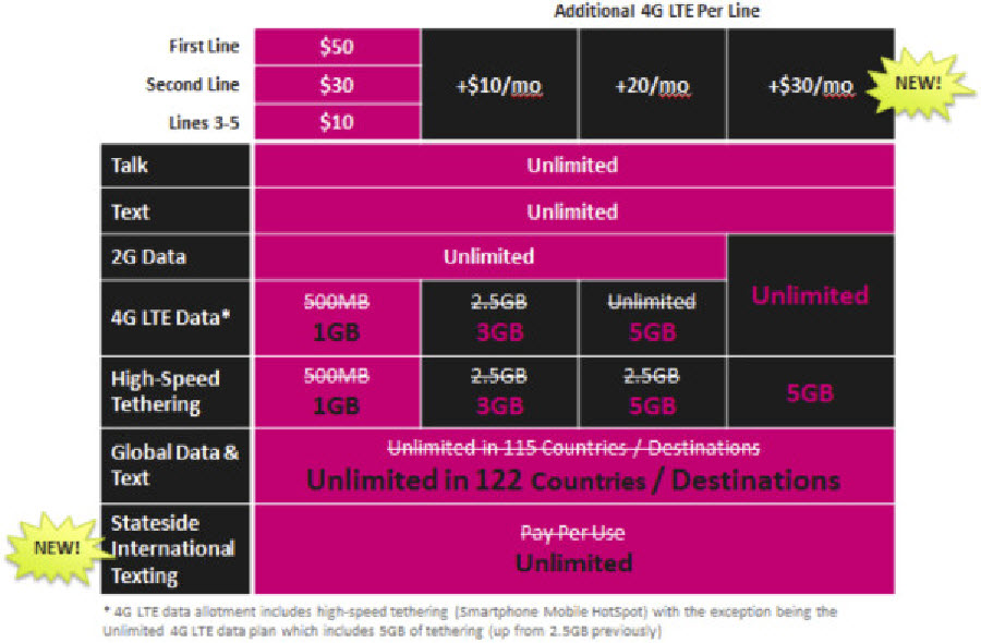 เนื่องจากวันที่ 23 มีนาคม นี้ T-mobile จะมีการปรับเปลี่ยน Simple Choice Plans ใหม่ ตามตารางข้างบนที่เห็นสำหรับลูกค้าใหม่