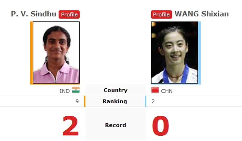 Sindhu P. V. (India) vs Shixian WANG (China) แข่งคู่ที่ 4 ในรอบค่ำ (ของสวิส) โดยคู่แรกของรอบค่ำ เริ่มแข่งประมาณ 01.10 น.