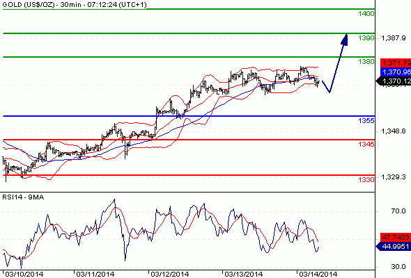 Our preference: Long positions above 1355 with targets @ 1380 & 1390 in extension.