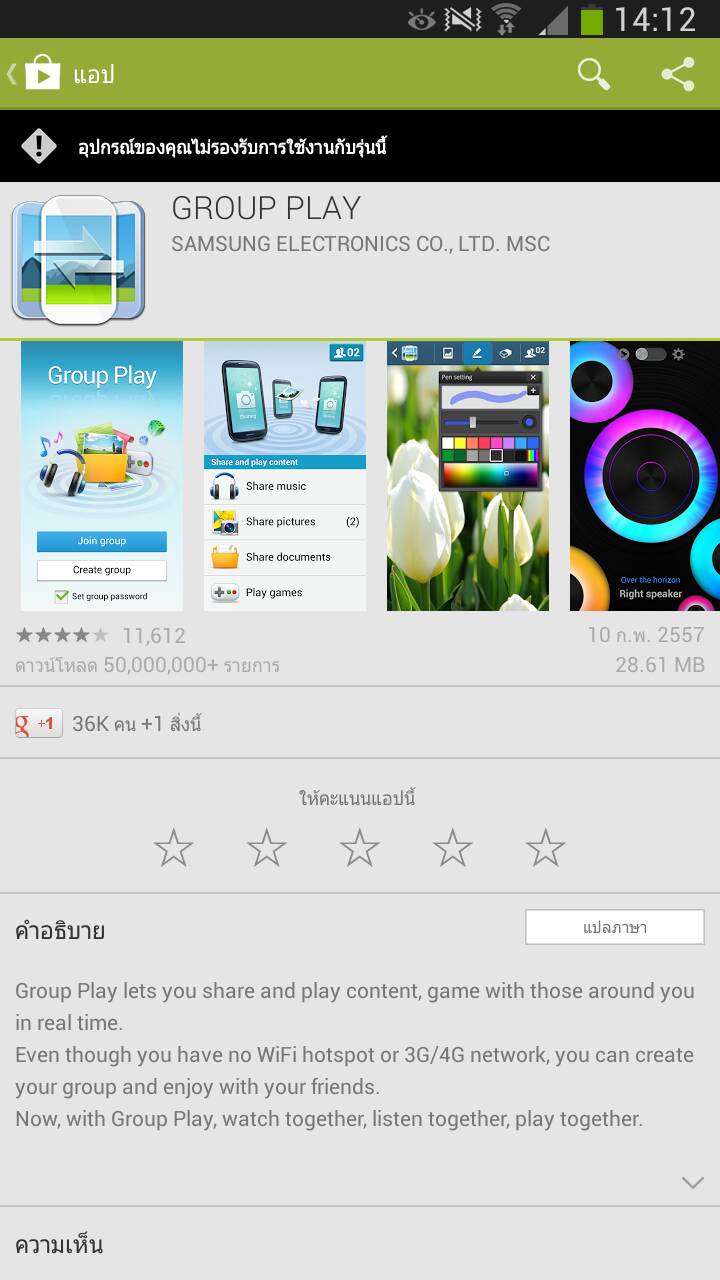 Samsung Mega 6.3 มี Group play ติดมากับเครื่อง แต่ update บน Play Store บอกอุปกรณ์ไม่รองรับ ใครเป็นบ้างครับ