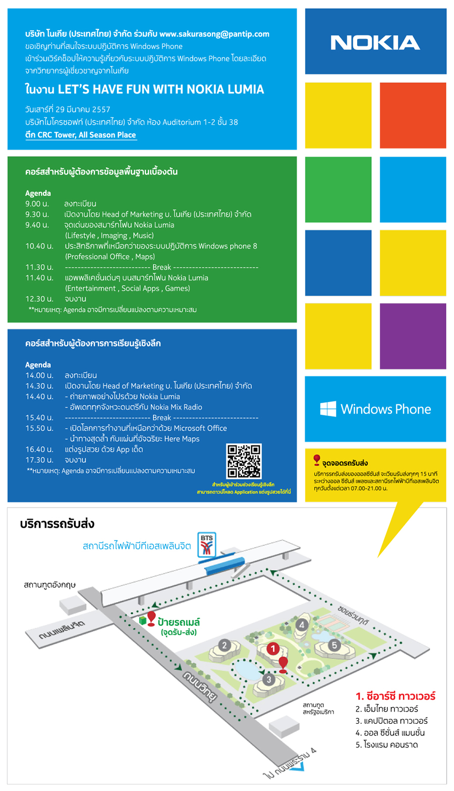 ** เชิญร่วมสนุกงาน Nokia มิตติ้ง&เวิร์คช็อบ ครั้งที่ 2 วันเสาร์ที่ 29 มีนาคม 2557 ใช้มือถือยี่ห้อไหนก็ไปได้ครับ **