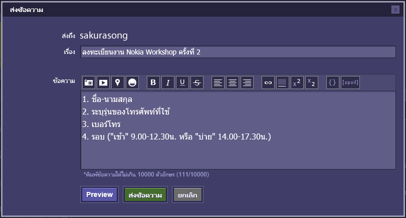 การลงทะเบียน ให้ส่งข้อความหลังไมค์มาที่ผม (