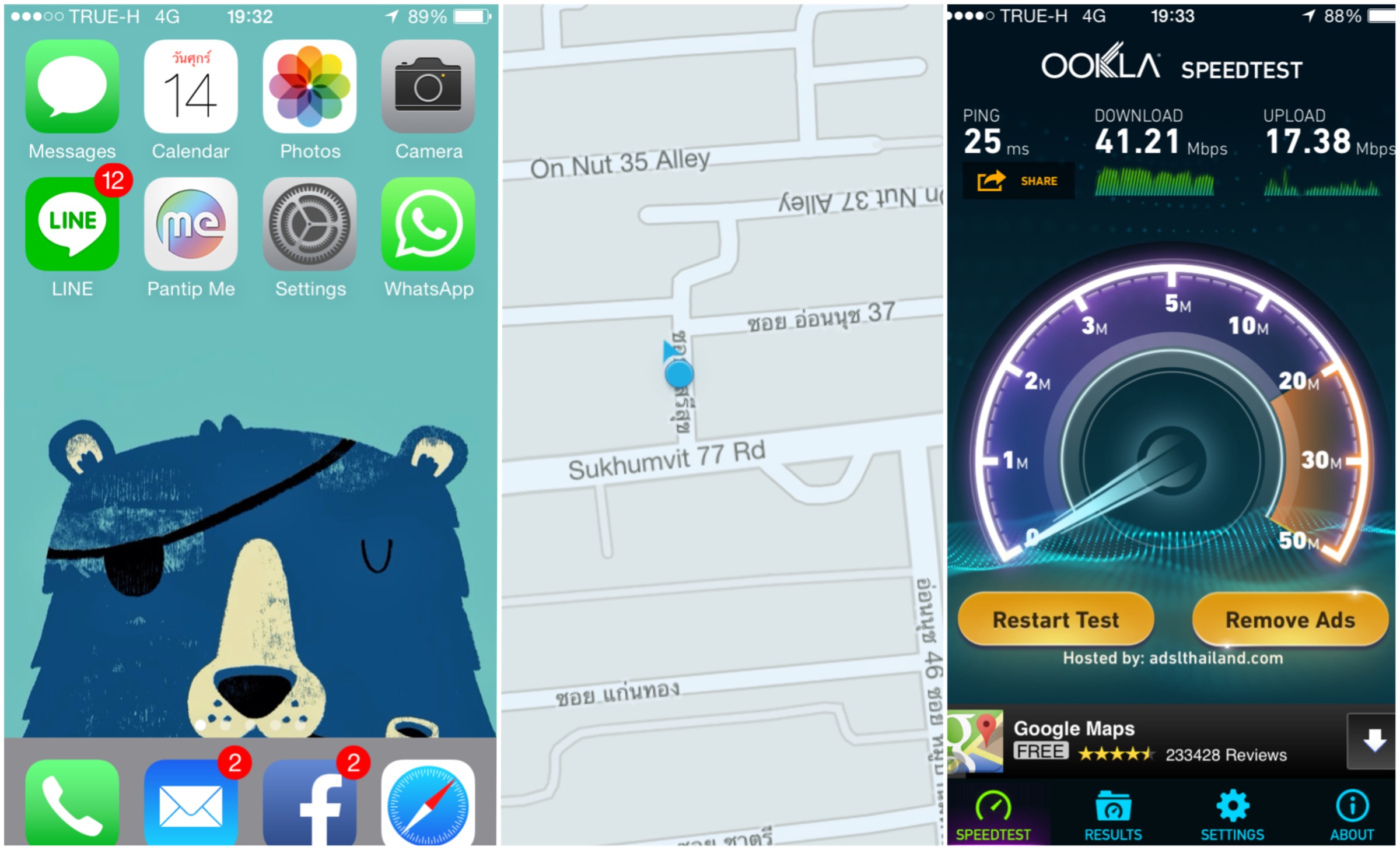 ผมอยู่อ่อนนุช ซอย 10 / สุขุมวิท 81 แท้ๆ เน็ตช้ามากครับ ยังไงก็รบกวนเอางบที่ทุ่มโฆษณา มาปรับปรุงระบบสัญญาณหน่อยนะครับ ท่านผู้นำด้าน 3G และ 4G. ไม่ต้องให้ผมแนบล้ิงค์กระทู้หลังไมค์นะ