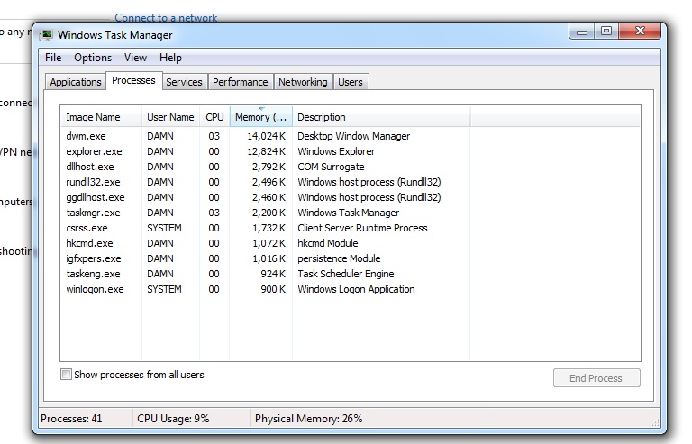 คือ คอมกระผม CPU มันทำงานผิดปกติ ซึ่ง พอเปิด หน้า Task Manager ขึ้นมา แล้วไปดูตรงที่ Processer ก็จะเห็นว่า มี Image ที่มีชื่อว่า dwm.exe ซึ่งกิน cpu ไปประมาณ 50 % ทีนี้ พอลอง End Process มันก็จะมี ตัว