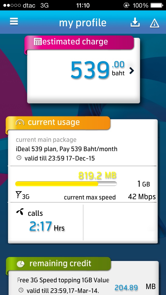 ผมใช้บริการของ DTAC ใน Package Smart Phone 599, 3G Booster 1GB ซึ่งปกติยอดของผมจะตัดวันที่ 2 ของทุกเดือน และเริ่มนับอัตราการใช้บริการใหม่ในวันที่ 3 ของทุกเดือน แต่วันนี้ (7 มิถุนายน 2556) ก็ได้มีข้อคว
