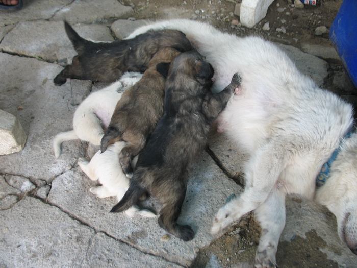 ครอกแม่หมาเทอร์เรียสีขาว ขาสั้น ตัวแม่ไซส์ไม่ใหญ่มากค่ะ ลูก 5 ตัว ผู้ 1 เมีย 4