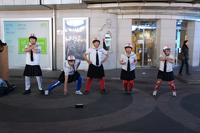 มาวันแรกก็เจอความเป็นเกาหลีเลย หนาวมาก อากาศน่าจะ 0 องศาตอนนั้น แขนสั้นนี่น่าจะแข็ง คนก็มามุงดูกัน