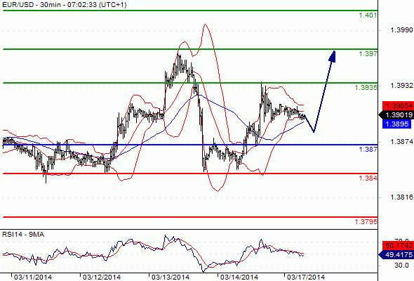 Our preference: Long positions above 1.387 with targets @ 1.3935 & 1.397 in extension.