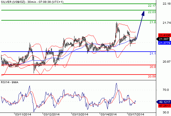 Our preference: Long positions above 21.1 with targets @ 21.8 & 22.03 in extension.