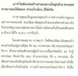 1.”ทำไมต้องก่อสร้างศาสนสถานใหญ่ๆด้วย พระพุทธศาสนาสอนให้สมถะ ทำอะไรเล็กๆ มิใช่เหรอ"