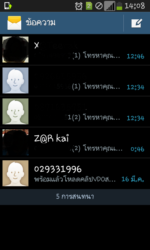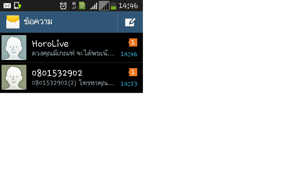 14.08 ซิม 1 ไม่มีสัญญาณ และโปรดสังเกตุข้อความที่คนโทรเข้ามาติดต่องานและส่วนตัว