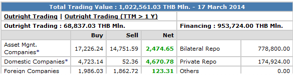 ตามประเภทนักลงทุน ประจำวันที่ 17 มีนาคม 2557 ดังนี้