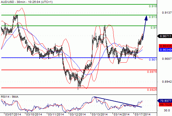Most Likely Scenario: Long positions above 0.901 with targets @ 0.91 & 0.913 in extension.