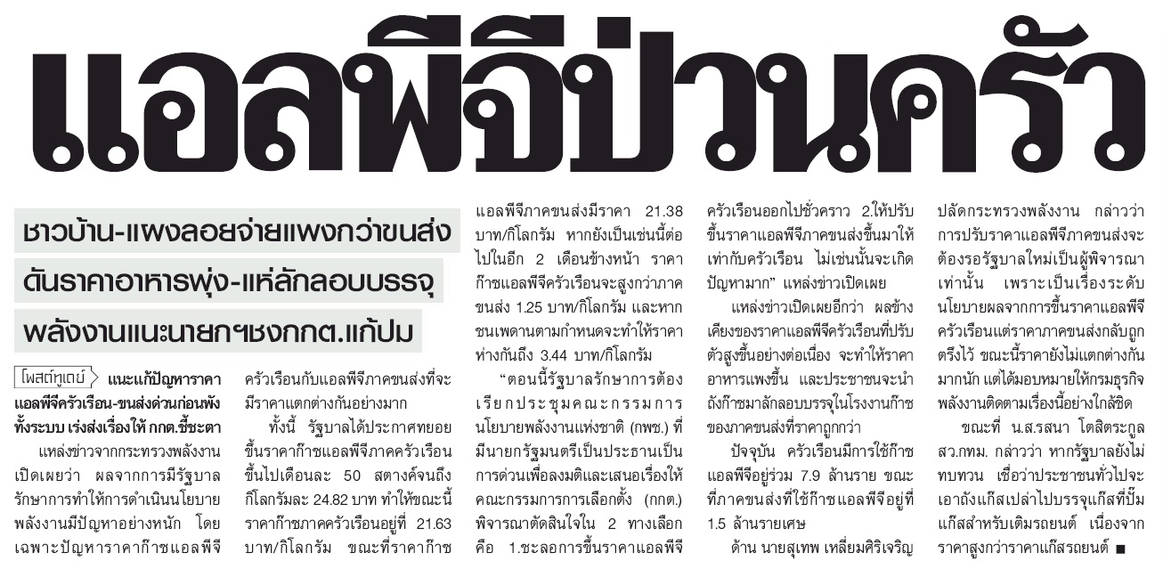 เร็วๆนี้ ก๊าซจะต้องหยุดขึ้น ไม่งั้นก๊าซขนส่งจะต้องปรับขึ้น ไม่ว่างทางไหนก็ข่าวร้ายของ sgp ทั้งนั้น