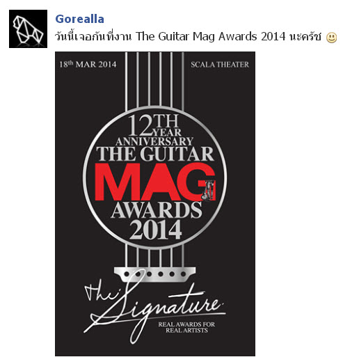 แจ้งข่าวจ้า วันนี้เจอ Gorealla กันที่งาน The Guitar Mag Awards 2014 นะครัช