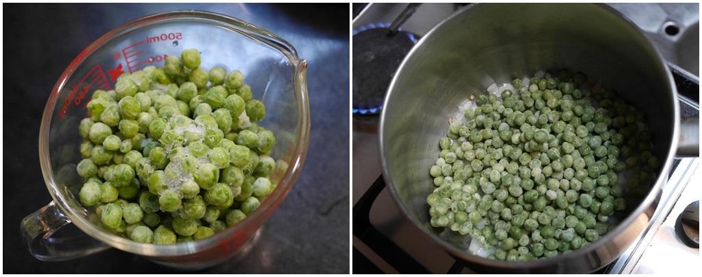 ใส่เม็ดถั่วลันเตาลงไป