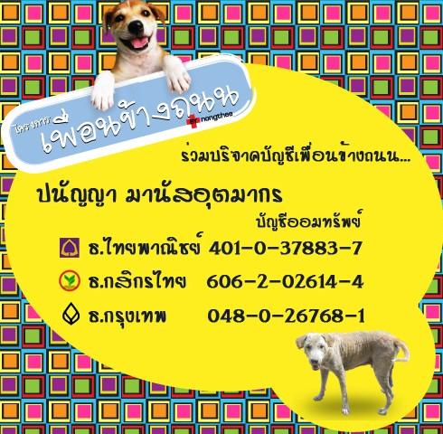 ..หาทุนทำหมันหมาจร รวม 3 ตัว (ตัวละ 600 บาท) ผ่านบัญชีเพื่อนข้างถนนค่ะ..