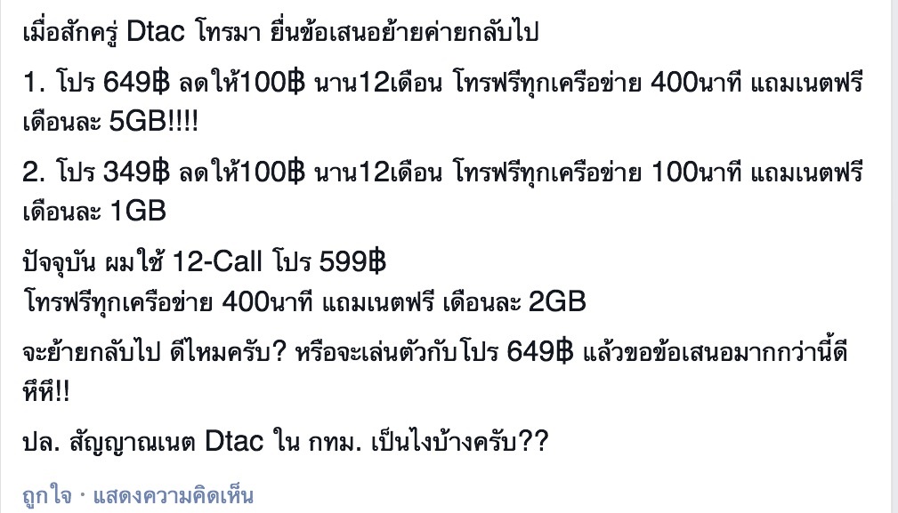 ถามดีแทค ไม่คิดจะให้ความสำคัญกับลูกค้าเก่าบ้างเลยเหรอคะ