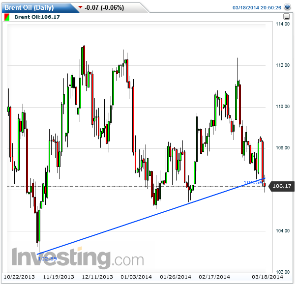 Brent : เหมือน จะหลุด Support line ซะแล้ว