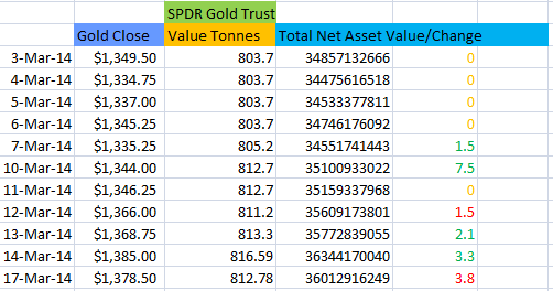 ยอดถือครอง ทองคำ ของกองทุน SPDR