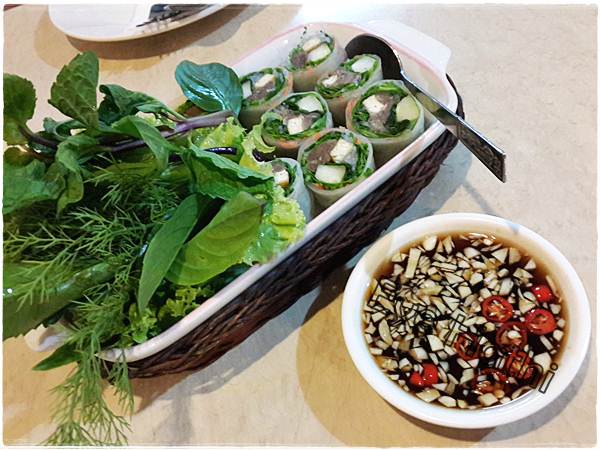 ปอเปี๊ยะสด น้ำจิ้มค่อนข้างเผ็ดค่ะ อย่าราดหมดนะ