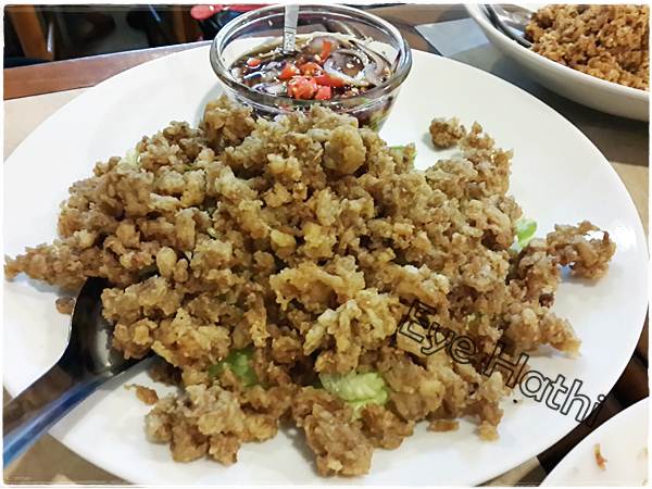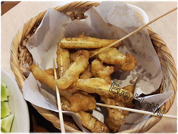 ปลาดุกฟู น่าจะไม่เต้าหู้ก็เห็ดมั้งนะคะ กรอบๆดี ด้านล่างเป็นสลัดแก้ว คลุกน้ำจิ้มน้อยๆ อย่าราด ไม่งั้นนิ่มแปะ