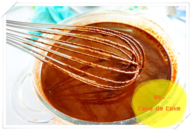 6. ใช้ตะกร้อมือคนให้ chocolate ละลายเข้ากับเนยและน้ำตาล พักให้เย็นแล้วค่อยทำขั้นตอนต่อไป
