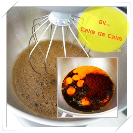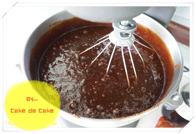 11. ตี speed กลาง จนส่วนผสม chocolate มีสีอ่อนลงเล็กน้อย หรือจนกว่าน้ำตาลจะละลายได้พอสมควร (สูตรนี้จะยังคงเหลือน้ำตาลเป็นเกล็ดๆ ไม่ละลายทั้งหมด)