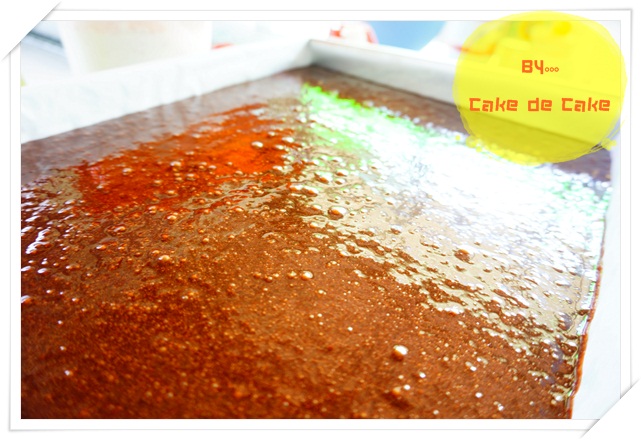 13. หลังจากผสมแป้งส่วนที่ 2 เข้ากันแล้ว ให้เททั้งหมดใส่ถาดอบ