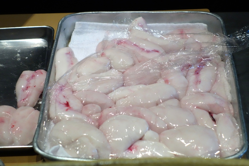 Shirako ของปลาปั๊กเป้า หรือว่าถุงสเปิร์มนั่นเอง อย่าเพิ่งยี้นะครับ ขอบอก (อันนี้เมื่อก่อนก็นึกว่ามันเหมือนกัน แต่จริงๆแล้ว มีทั้งของปลาค็อด ที่จะขยุกๆขยึยๆกว่า แล้วก็ของปลาปั๊กเป้าที่จะเรียบๆรีๆ อันนี้ต้องขอบคุณคุณ Moopenguin ที่ให้ข้อมูลครับ)