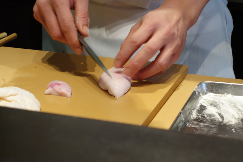 ต่อด้วยปลาทรายหรือว่า Kissu เนื้อปลาสุกกำลังดี อันนี้ผมชอบแบบจิ้มน้ำซ๊อสมากกว่า ให้เนื้อปลาชุ่มๆหน่อย คีบหัวไชเท้าฝอยโปะลงบนปลาอีกนิด อืมมม