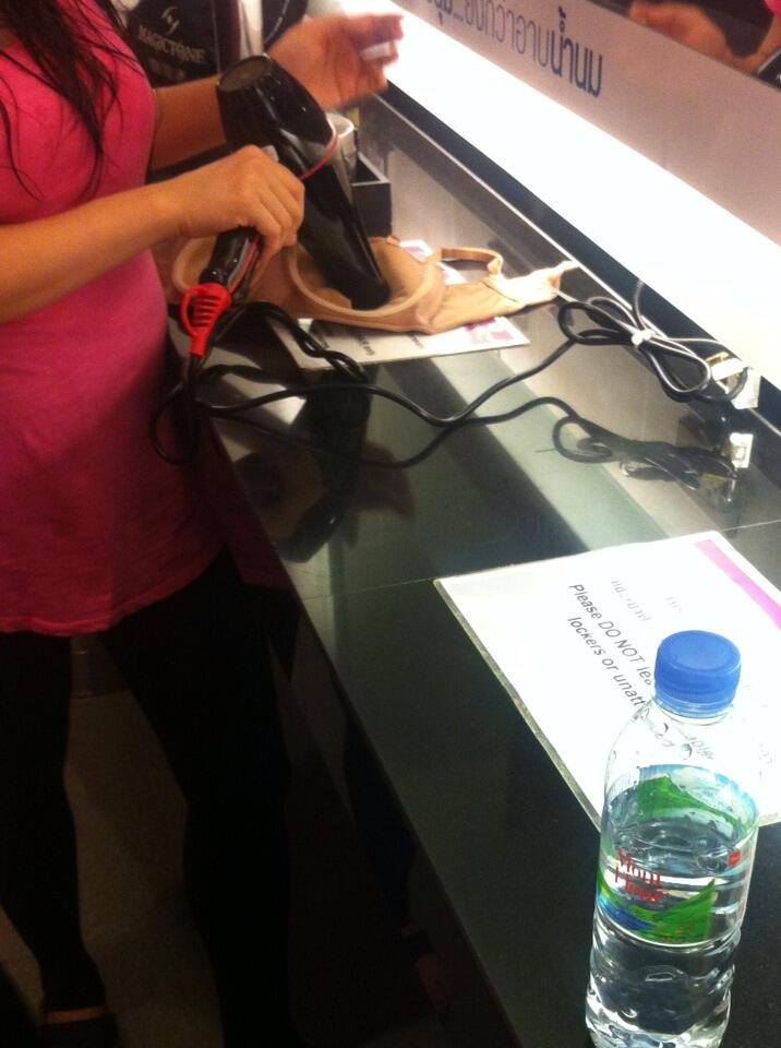 เมื่อคืนไปฟิตเนสมาค่ะ หลังอาบน้ำเสร็จก็มาไดร์ผมปกติ ซึ่งที่ฟิตเนสสาขาอโศกจะมีไดร์สาธารณะคือแชร์กันใช้ประมาณ5-6ตัว ทางฟิตเนสจะแปะป้ายไว้ว่าไดร์สำหรับเป่าผมเท่านั้น ไม่ให้ใช้เป่าอย่างอื่น ขณะเรากำลังไดร์ผมอยู่ ก็เห็นผู้หญิงคนนึงมาไดร์ผมข้างๆเราพร้อมกับหยิบยกทรงตัวเองมา ไดร์ผมตัวเองไป เป่ายกทรงแบบห่างๆไป สักพักก็เปลี่ยนให้เพื่อนอีกคนมาทำแทน นางเป่าผมตัวเองสลับกับเป่ายกทรง จนถึงจุดที่นางเอาไดร์ไปซุกตรงเต้าของยกทรง(ตามรูป) ไม่ใช่จ่อห่างๆ แต่ซุกลงไปเลย แล้วก็ทำลอยหน้าลอยตาไม่สะทกสะท้าน ที่เด็ดคือป้ายที่ห้ามของทางทรูก็วางอยู่ตรงหน้านาง(จะเห็นว่านางเอายกทรงวางทับป้ายอยู่) เราทนไม่ไหวเลยเตือนนาง