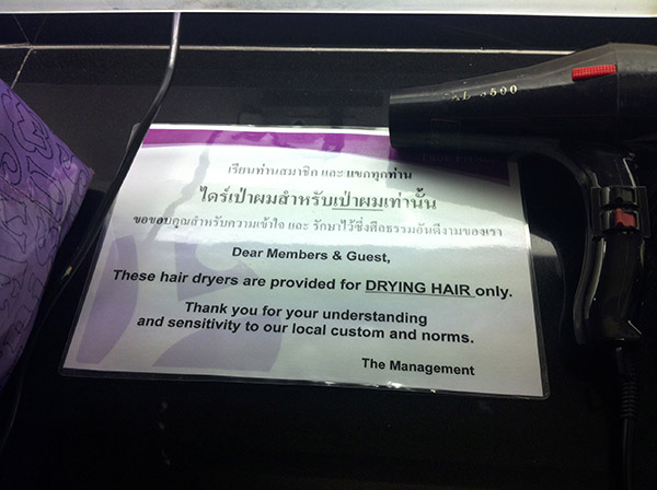 เราโกรธมากๆค่ะคือไม่มีสำนึกในใจเลยว่าเป็นของส่วนรวม คืออนามัยส่วนรวมที่ทุกๆคนที่เป็นสมาชิกต้องใช้ร่วมกัน คือคุณลองคิดสักนิดมั้ยว่าไดร์ของสาธารณะ ทุกคนต้องใช้ร่วมกัน แต่คุณเอามาเป่าเสื้อในจ่อลงไปแบบนั้น วันก่อนก็เจอคนเอามาเป่ากางเกงใน แล้วก็เอาไปเป่าผมต่อ ขนาดผ้าเขายังแยกผ้าเช็ดหน้ากับผ้าเช็ดตัวเลย พอมีคนเตือนก็ไม่สำนึกกลับจะมาเอาเรื่อง เราเลยถ่ายรูปไว้แล้วออกมาถามพนักงานเพราะอยากรู้ว่ามีทางที่จะแก้ปัญหาตรงนี้มั้ยก็พบว่า แปะป้ายก็แล้ว ตักเตือนก็แล้ว บางคนพอแม่บ้านไปเตือน ก็ด่าใส่แม่บ้านอีก พนักงานเลยบอกเราว่ารอบหน้าให้ถ่ายมาชัดๆให้เห็นหน้าแล้วทางคลับจะเรียกเมมเบอร์มาเตือนทีหลัง ทำอะไรช่วยคิดถึงส่วนรวมด้วยนะคะ คุณไม่ถือแต่คนอื่นถือมั้ยเรื่องแบบนี้ ถ้าอยากทำเชิญเอาไดร์ส่วนตัวมาเองเถอะค่ะ