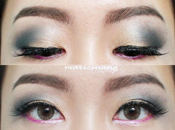 คีย์หลักของสีที่เราดึงมาแต่งตา คือ สีทอง น้ำเงิน ดำ และชมพูม่วงค่ะ