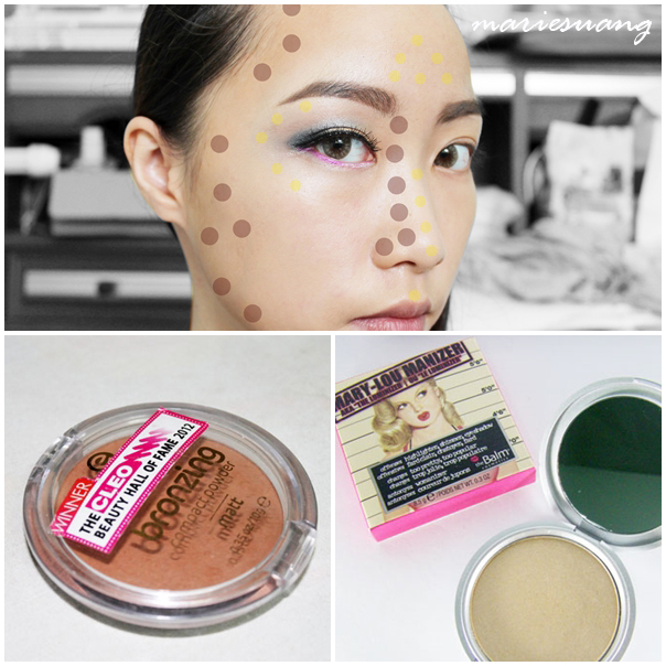 15. ไฮไลต์ให้หน้าด้วย the Balm mary - lou manizer ตามจุดสีเหลือง