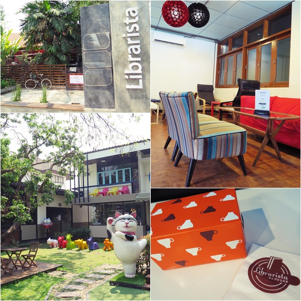 แต่ก่อนจะไปถึงอาหารกลางวันครับ เรามาแวะที่ร้านใกล้ที่บ้านเส-ลา อยู่ในนิมมานฯซอย 5 เหมือนกัน ชื่อว่าร้าน Librarista ชื่อร้านก็บอกแล้วครับว่าเป็นทั้งร้านกาแฟแล้วก็มีห้องสมุดให้ยืมหนังสืออ่านได้ด้วย โดยตัวห้องสมุดก็จะแยกออกมาจากร้านกาแฟนะครับ โดยลูกค้าสามารถนำบิลที่สั่งกาแฟไปยื่นให้พนักงานในห้องสมุดดูและขอเข้าไปใช้บริการได้ (มีทางเดินเชื่อมถึงกัน) โดยเค้าให้นั่งได้ 2 ชั่มโมงครับ สามารถนำเครื่องดื่มที่สั่งเข้าไปดื่มได้ด้วยครับ จริงๆผมเคยเห็นภาพร้านที่นี่จากนิตสารมาแล้วก่อนหน้านี้ พอเห็นเจ้าแมวหน้าร้านก็จำได้ทันทีครับ ถือว่าเป็นอีกร้านที่น่านั่งเลยครับ