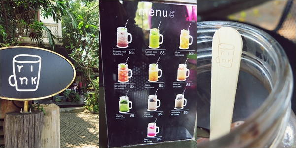 แต่ที่น่าสนใจสำหรับผมไม่แพ้กันก็คือร้านใหม่ของแกที่ชื่อว่า drink เป็นร้านเครื่องดื่มที่ผมขอเรียกว่าเครื่องดื่มเกร็ดน้ำแข็ง ซึ่งสำหรับผมวิธีการที่เอาน้ำแต่ละประเภทไปแช่เย็นให้เป็นเกร็ดน้ำแข็งก่อนแล้วค่อยน้ำมาดื่มนั้นมันไม่ได้ใหม่อะไรนีก แต่พอใส่ความคิดสร้างสรรค์และเพิ่มดีเทลเข้าไปนิดหน่อยเท่านั้นกลายเป็นของใหม่เลย ทั้งตัวแก้วที่เหมือนโถแก้วโบราณแต่มีหูจับทำให้ดูมีเอกลักษณ์มากขึ้น แถมทรงยังไปเหมือนกับโลโก้ร้านด้วยความตั้งใจอีกต่างหาก อร่อยไม่อร่อยไม่รู้ (เพราะอร่อยของแต่ละคนไม่เหมือนกันเนอะ) แต่ผมชอบไอเดียไปแล้วอ่ะ ^^