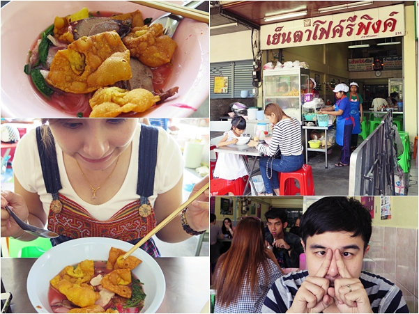 หลังจากนั่งฟินกับร้านไอดอลของผมซักพัก ก็ได้เวลาไปทานอาหารกลางวันกัน ซึ่งอย่างที่เกริ่นไว้ครับ ร้านนี้แฟนผมเค้าแพลนมาตั้งแต่อยู่กรุงเทพฯแล้ว ซึ่งก็เหมือนกันว่ามาเชียงใหม่ทีไรก็ต้องมาทานเย็นตาโฟที่ร้านนี้ให้ได้สักมื้อ ร้านนั้นก็คือ "ร้านเย็นตาโฟร์ศรีพิงค์" ครับ ร้านตั้งอยู่ริมถนนสุเทพเลยครับ หาไม่ยากครับ แฟนผมบอกว่าร้านนี้แม่ค้าแต่งตัวสวยทุกวัน ถือเป็นเอกลักษณ์ของร้านไปแล้ว ส่วนเรื่องรสชาดอันนี้ผมต้องขอยอมรับว่าเป็นร้านเย็นตาโฟร์ที่อร่อยที่สุดร้านนึงที่ผมเคยทานมา ทั้งเกี้ยวกรอบแผ่นใหญ่เท่าบ้าน ^^ และสูตรน้ำเย็นตาโฟร์เฉพาะของที่ร้าน เรียกได้ว่าอร่อยขึ้นตาเลยครับ ใครยังไม่เคยแวะมาก็มาลองกันได้ครับ แนะนำ