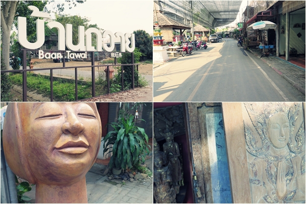 หลังจากอิ่มแล้ว คุณภรรยาก็ใจดีบอกว่าจะพาผมไปดูเฟอร์นิเจอร์ไม้ที่หมู่บ้านถวาย อำเภอหางดง ซึ่งเป็นหมู่บ้านที่มีอายุเก่าแก่กว่าร้อยปี คนในชุมชนส่วนใหญ่ทำงานด้านหัตถกรรมแกะสลักไม้ แล้วก็เปิดหมู่บ้านให้เป็นสถานที่ท่องเที่ยวขายสินค้างานไม้ ผมเองไม่เคยมาที่นี่เลยรู้สึกตื่นเต้นเล็กน้อย เพราะส่วนตัวชอบเฟอร์นิเจอร์งานไม้อยู่แล้ว พอไปถึงที่หมู่บ้านถวายก็รู้สึกแปลกๆว่าทำไม่คนเงียบผิดปกติ มีร้านเปิดอยู่ค่อนข้างบางตา พอถามได้ความจากร้านที่เปิดอยู่ก็เลยทราบว่าร้านที่นี่ส่วนใหญ่จะปิดวันอาทิตย์ซึ่งเป็นวันที่เราไปพอดี (แจ๊คพอต!) เลยถ่ายรูปบรรยากาศวันร้านปิดมาฝากนะครับ ^^