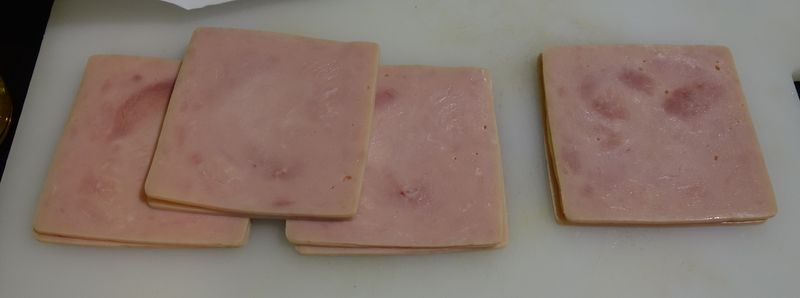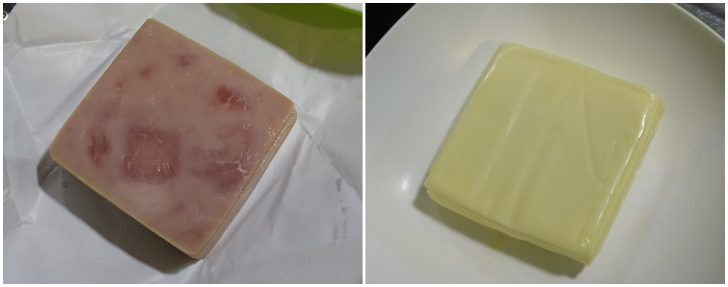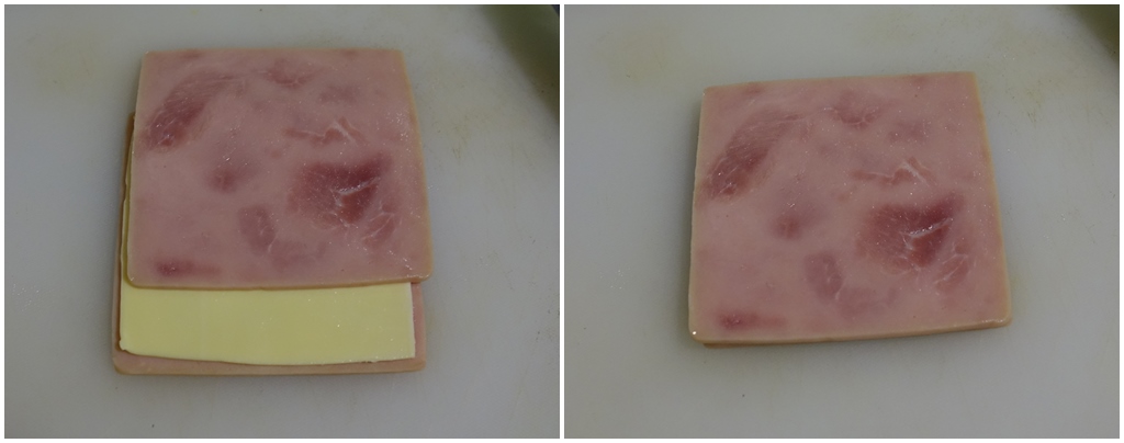 เอาแฮม 2 แผ่น สอดไส้ตรงกลางด้วยชีส
