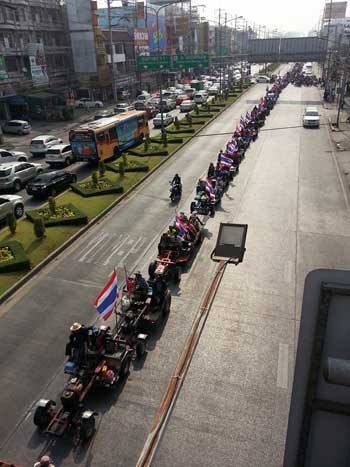 เช้าวันนี้หลวงปู่พุทธะอิสระ นำขบวบชาวบ้านห้าพันคนออกขายข้าวเปลือกกับรัฐบาลปูแดง