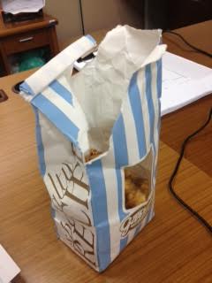 เช้าวันรุ่งขึ้น ซึ่งก็คือวันนี้ มาถึงที่ทำงาน ก็ตกใจกันใหญ่ เพราะถุง Garrett ถุงนั้น ก็ถูกฉีกขาด ดังในภาพ