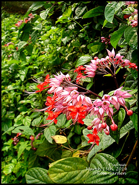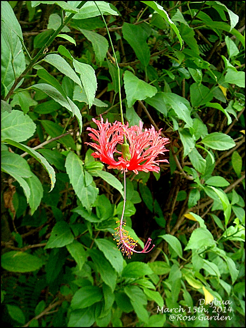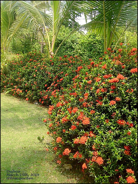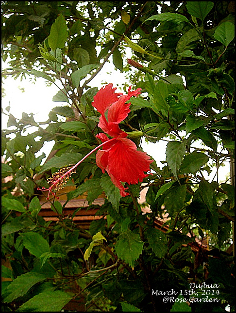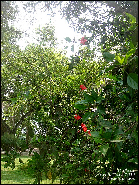 ลงจากรถ ก็พบแนวต้นชบา และพู่เรือหงษ์ ใบเขียวๆ ดอกสีแดง ตรงหน้าเลยค่ะ ^^