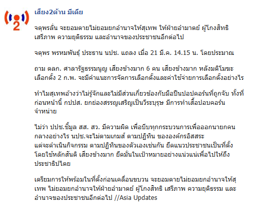 จตุพร พรหมพันธุ์ ประธาน นปช. แถลง เมื่อ 21 มี.ค. 14.15 น. โดยประมาณ