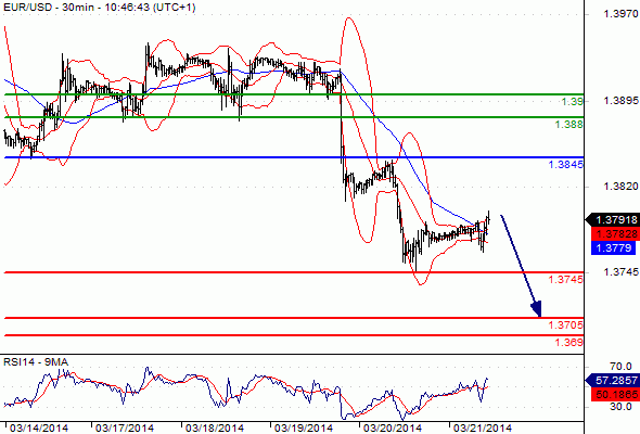 Most Likely Scenario: Short positions below 1.3845 with targets @ 1.3745 & 1.3705 in extension.