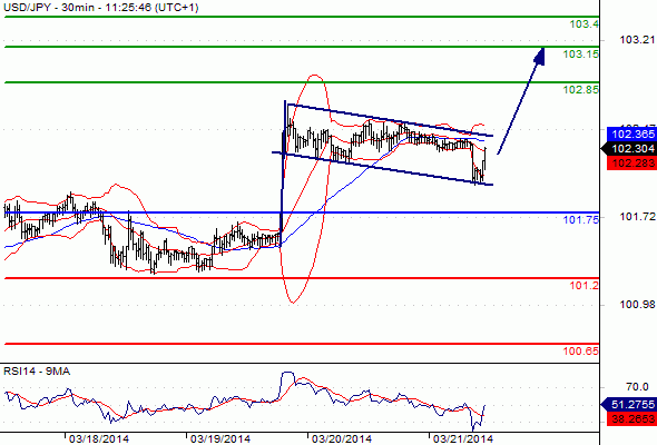 Most Likely Scenario: Long positions above 101.75 with targets @ 102.85 & 103.15 in extension.